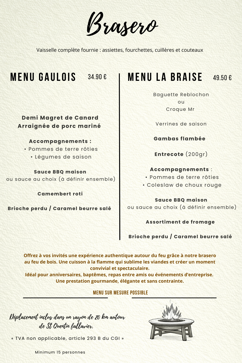 Prestation brasero sur mesure ou avec menu pour vos événements minimum 10 personnes